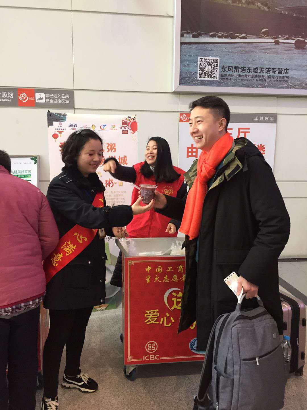 短短的一個(gè)半小時(shí),送出了近三百份臘八粥和雪白的饅頭。把幸福喝進(jìn)肚里,把快樂放在心上。山東臨沂的王師傅喝著臘八粥動(dòng)情地說道:“沒想到回家的路上能在揚(yáng)州汽車站感受到節(jié)日的快樂,揚(yáng)州人真的善良”。