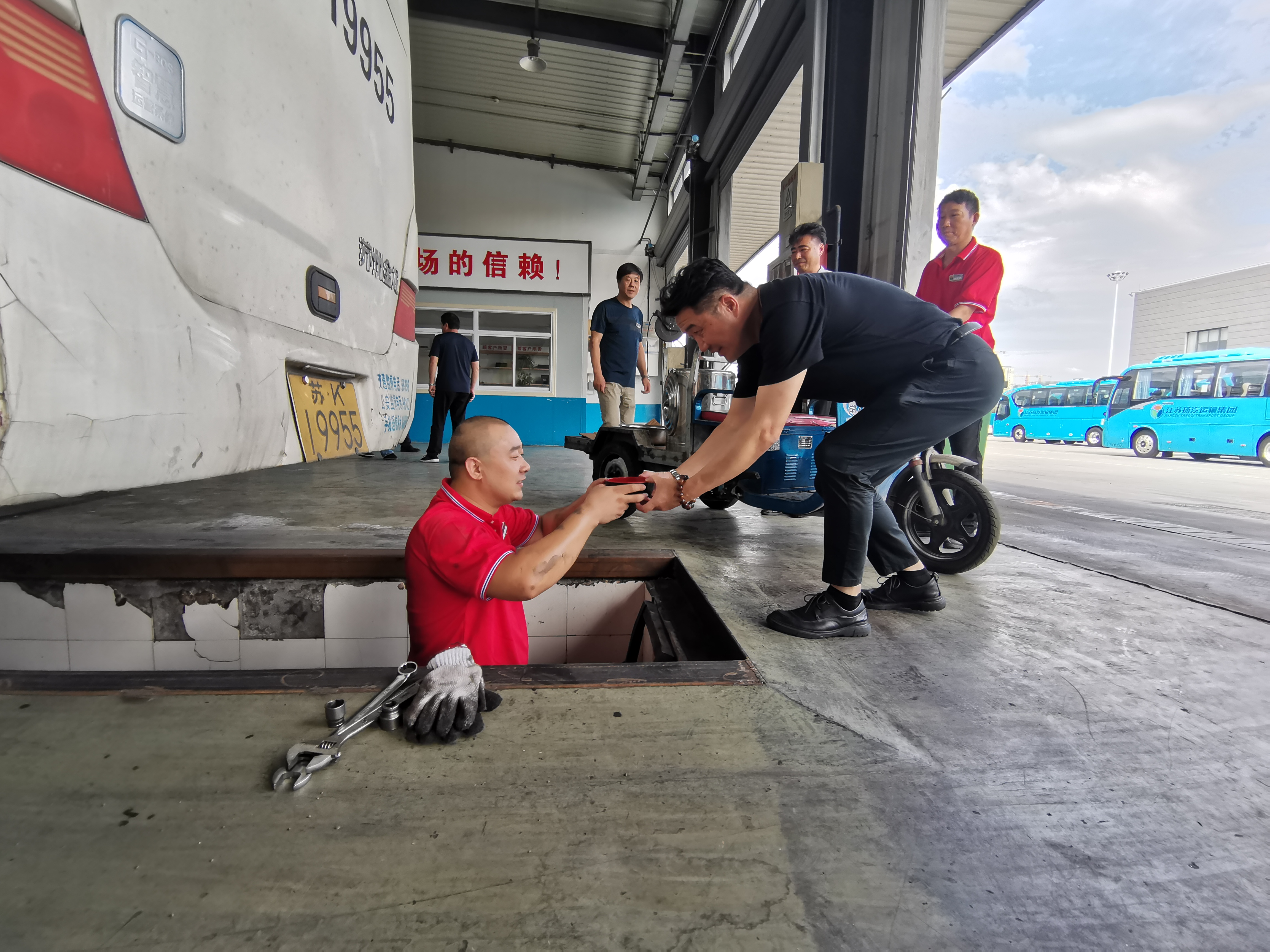 近日,揚城入伏以來,室外氣溫高達37℃。修理廠生產一線挑戰(zhàn)炎熱,作業(yè)于酷暑環(huán)境中,為集團公司車輛維修保班保點。