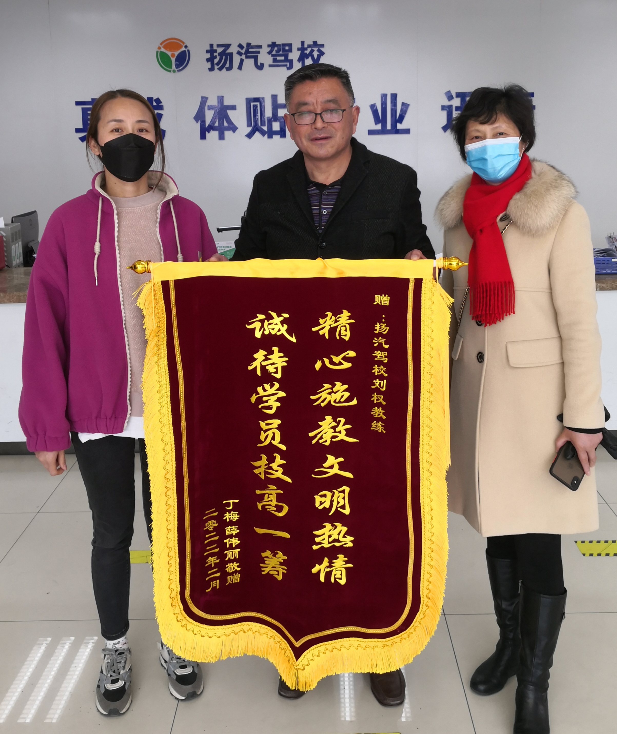揚(yáng)汽駕校好教練 學(xué)員致謝送錦旗