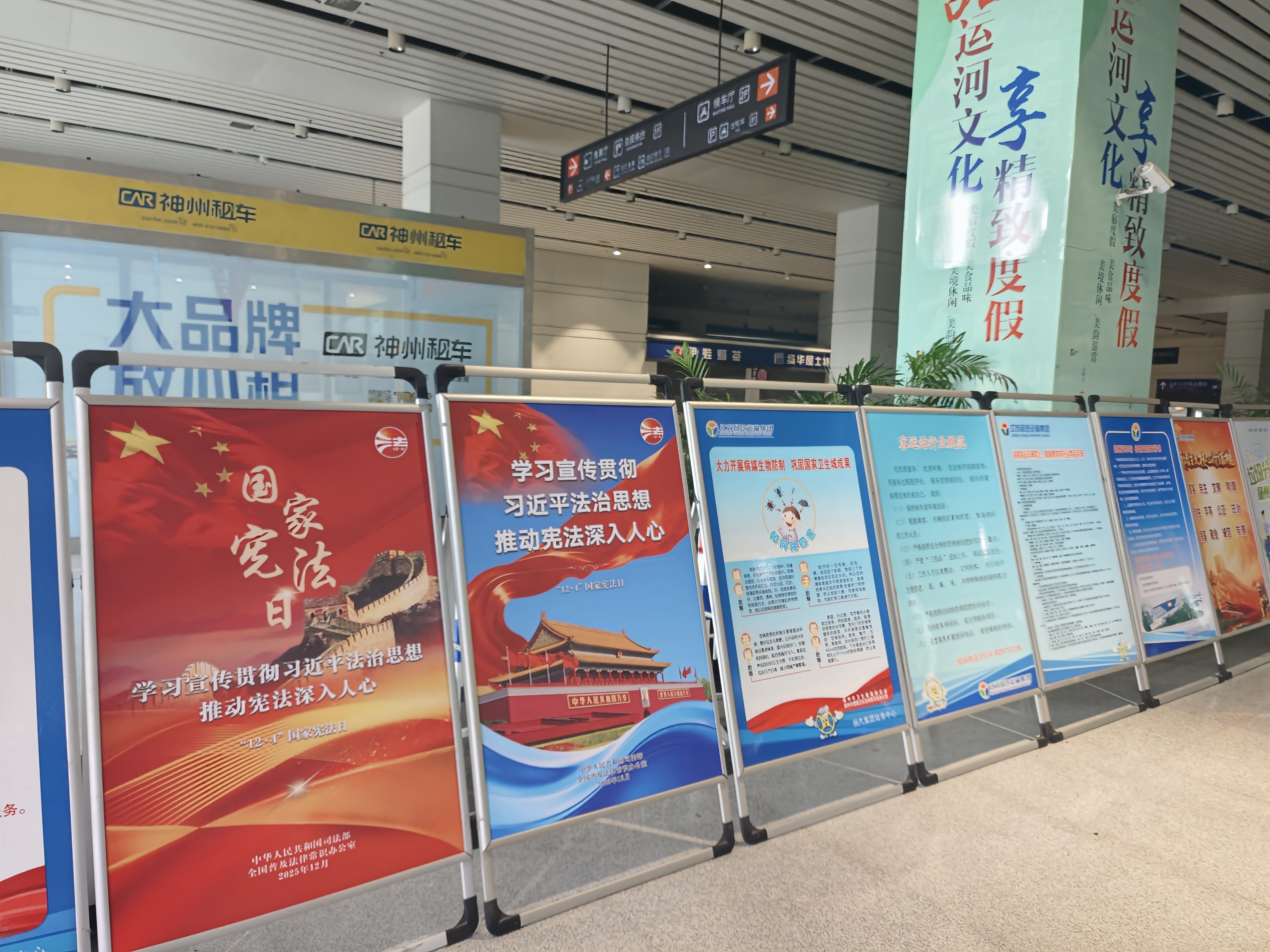 為營造濃厚宣傳氛圍,集團(tuán)充分利用線上線下宣傳陣地。在線下,集團(tuán)充分利用交通服務(wù)窗口優(yōu)勢(shì),在東部樞紐、西部樞紐的候車區(qū),科目三考場(chǎng)候場(chǎng)區(qū)及集團(tuán)辦公區(qū)等場(chǎng)所,不僅通過電子大屏滾動(dòng)播放宣傳內(nèi)容,還精心布置了系列主題戧牌,使憲法知識(shí)融入日常工作與服務(wù)場(chǎng)景。線上宣傳同步推進(jìn),通過發(fā)放學(xué)習(xí)資料,擴(kuò)大了宣傳的覆蓋面和靈活性。